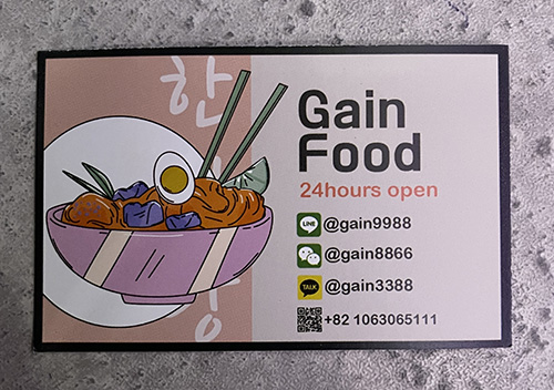 GainFoodというあたかもレストランのような名刺!!笑