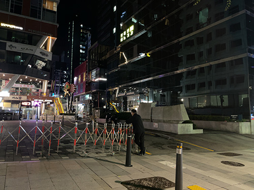 こちら、カンナム駅を背にして、黄昏れていらっしゃる韓国紳士の脇の路地を奥に入っていきます!